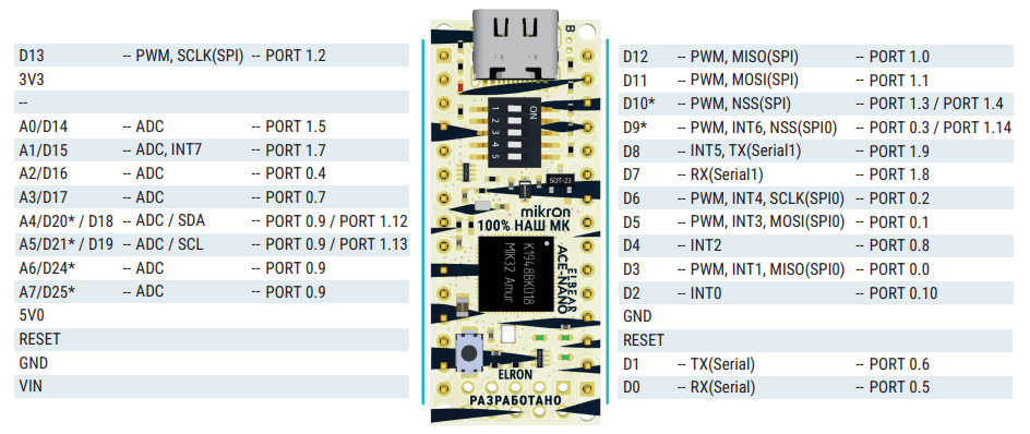 Плата ELBEAR ACE-NANO (RU Arduino, MIK32 Амур)