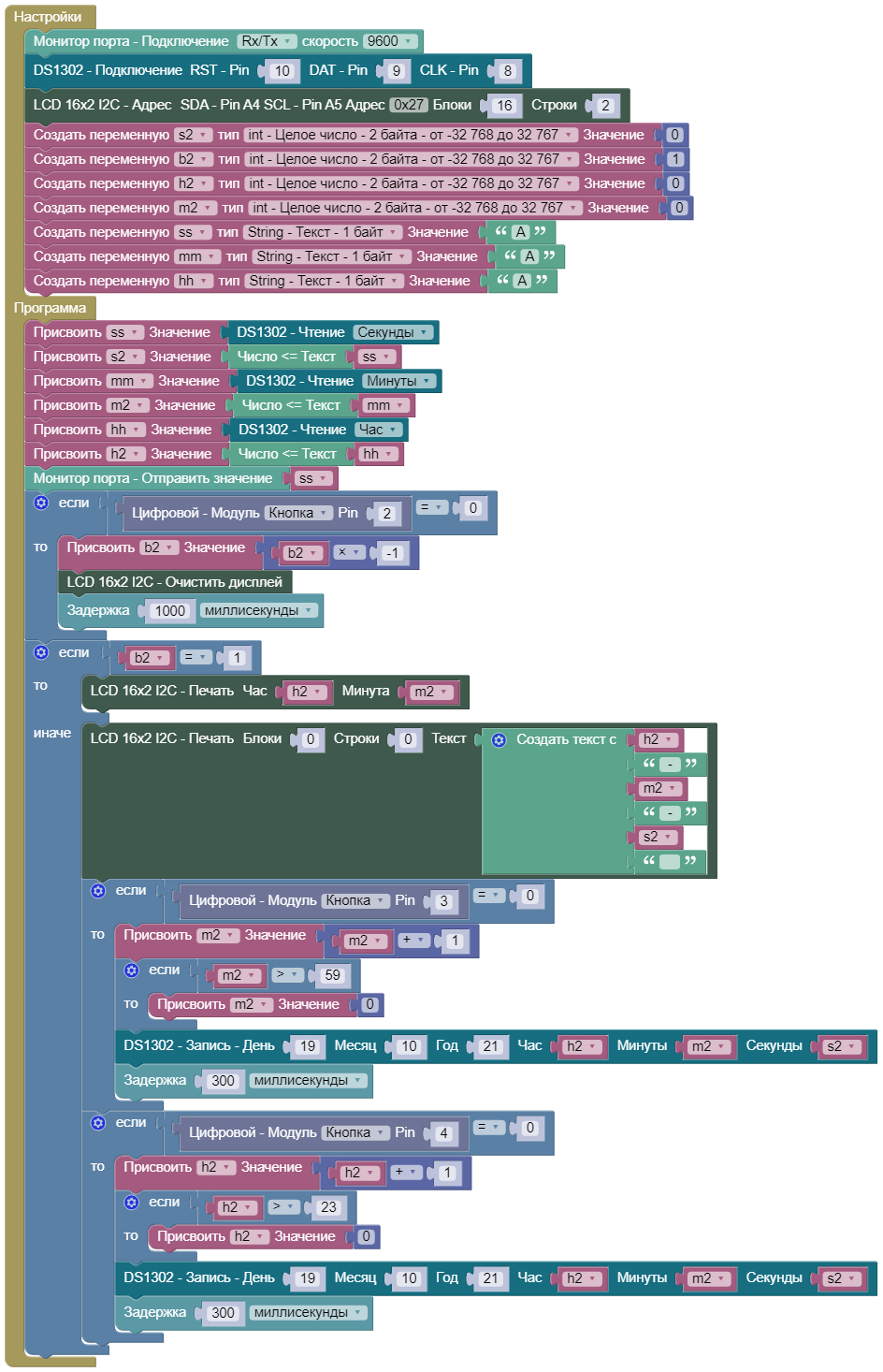 Открыть пример: Online ArduBlock