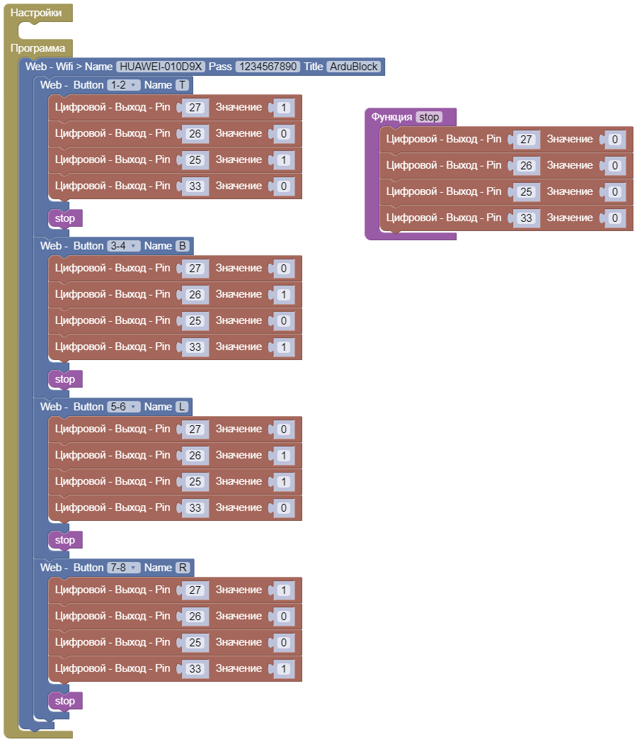 Открыть пример: Online ArduBlock