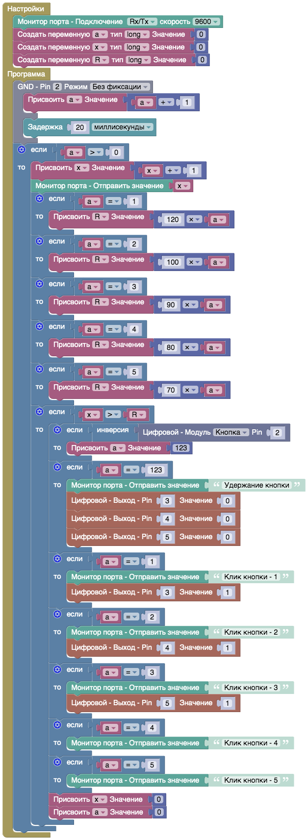 Открыть пример: Online ArduBlock