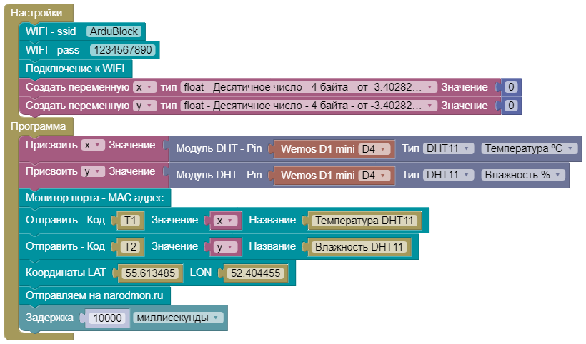 Открыть пример: Online ArduBlock