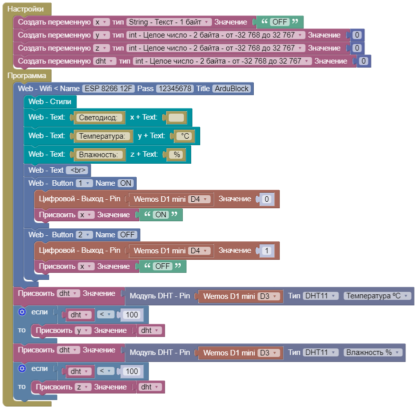 ESP 8266 12 + DHT11 + LED