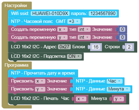 Отобразим полученные данные времени с сервера на дисплее 1602A.