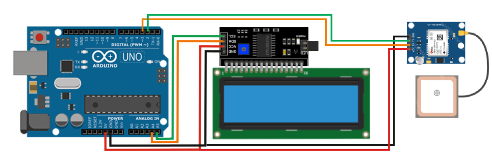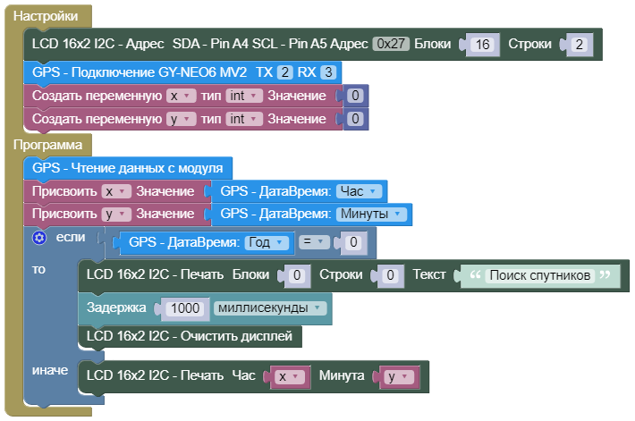 Отобразим полученные данные времени с GPS на дисплее 1602A.
