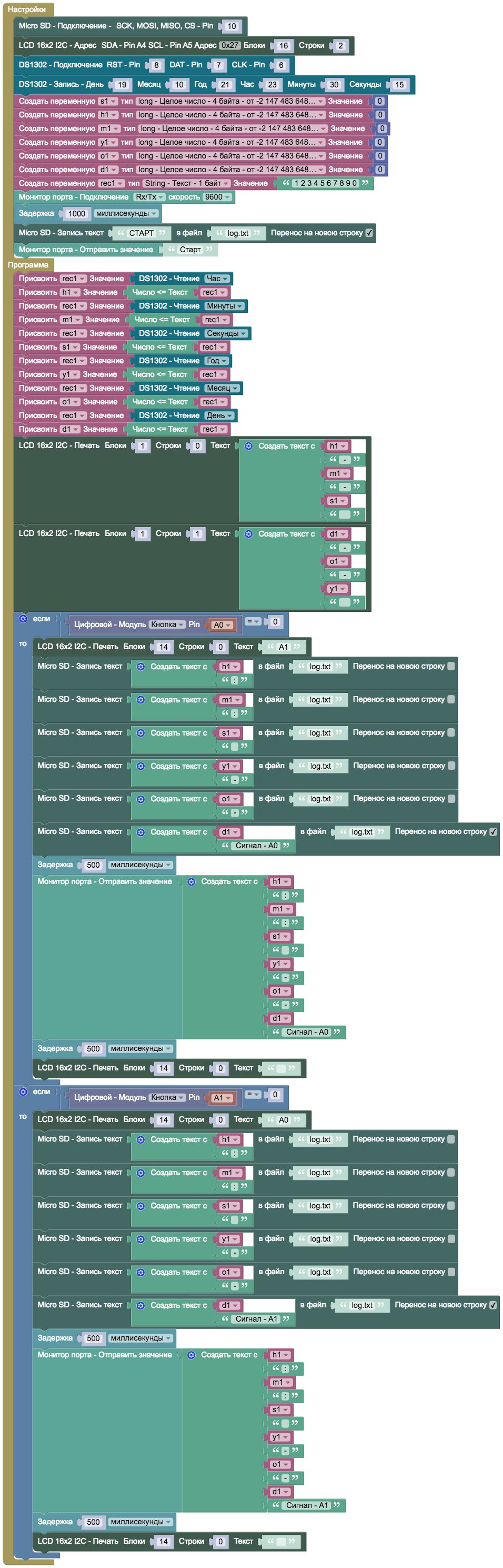 Открыть пример: Online ArduBlock