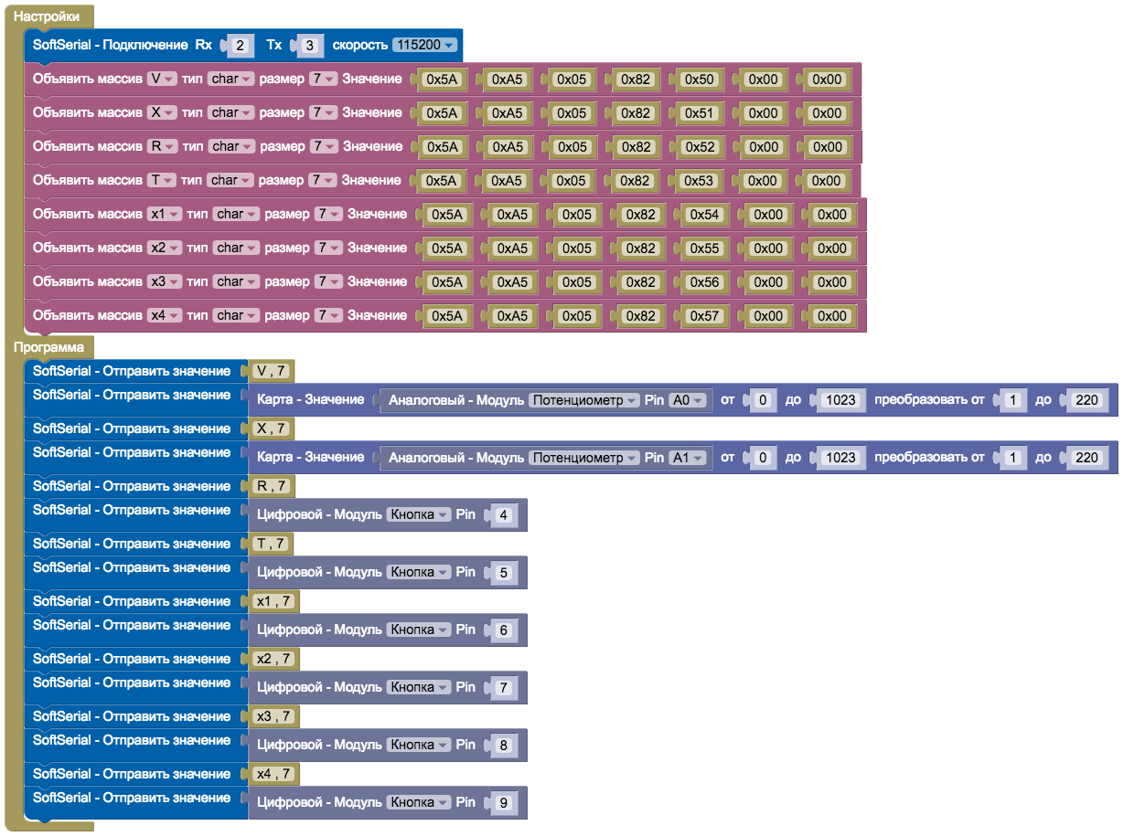 Открыть пример: Online ArduBlock