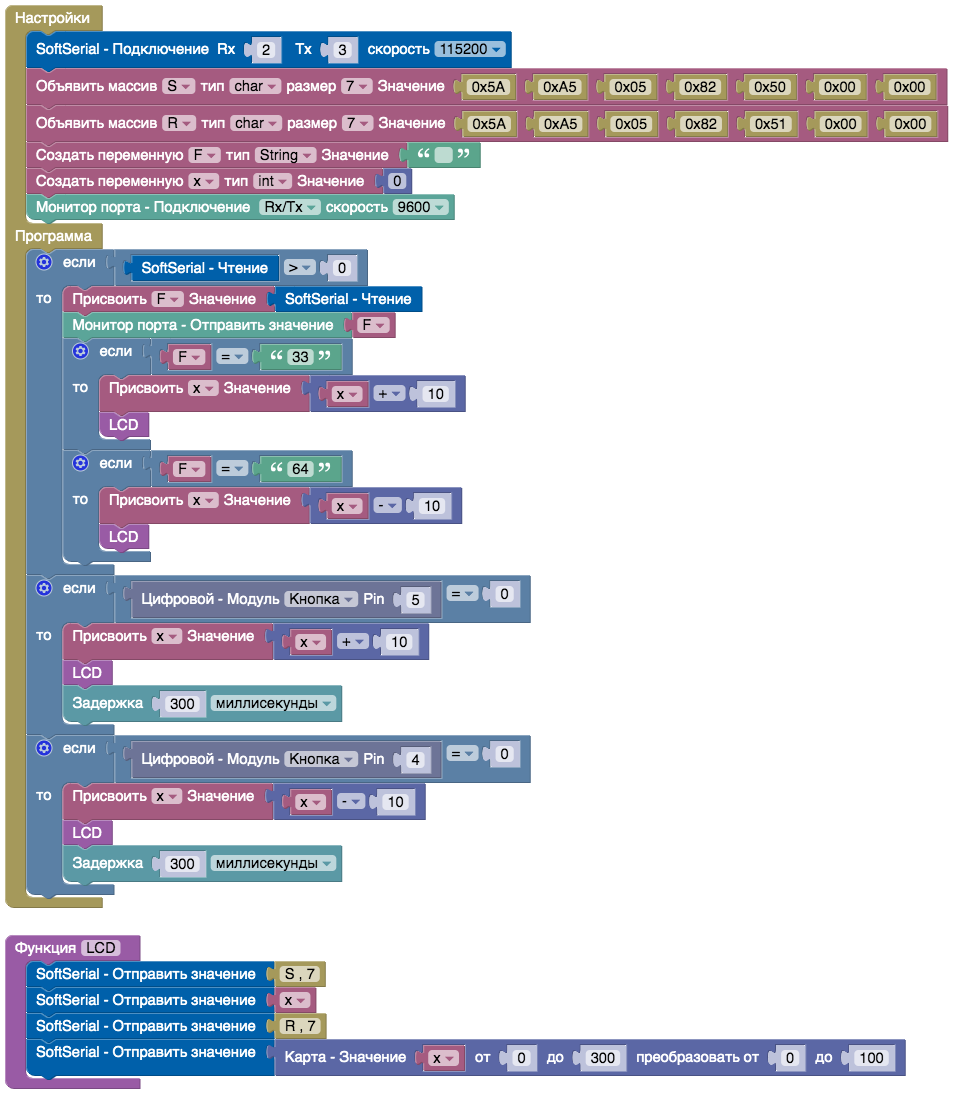 Открыть пример: Online ArduBlock