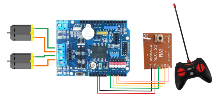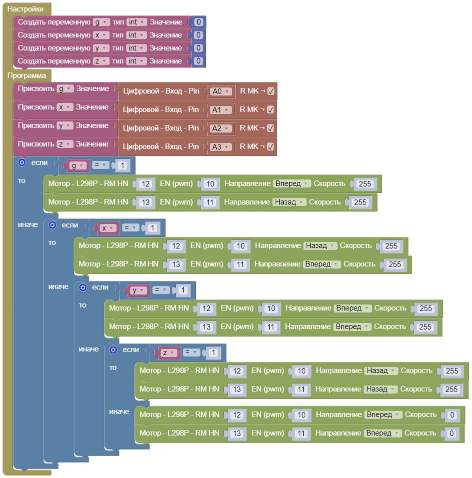 Получаем данные с кнопок пульта и включаем моторы на роботе.