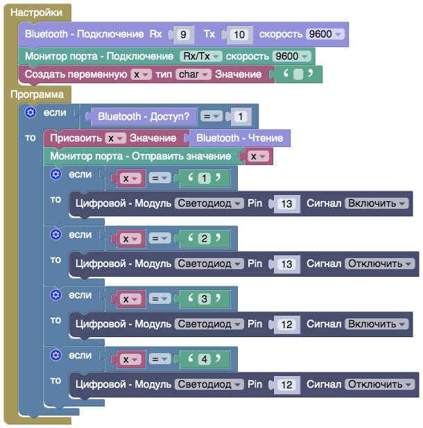 Открыть пример: Online ArduBlock