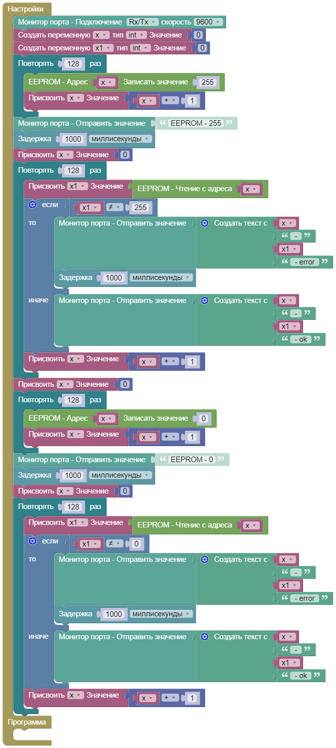 Тест - Запись и чтение EEPROM памяти мк.