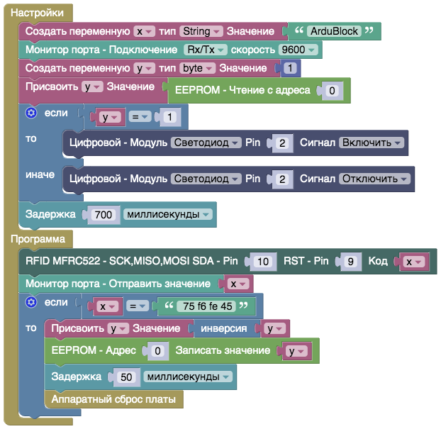 Если карта верна то включаем светодиод, подносим карту второй раз и отключаем светодиод