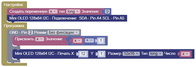 При получении клика, к переменной x и прибавляем значение 1, далее отображаем значение на дисплее MINI OLED!