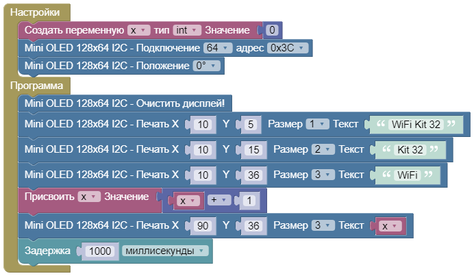 Отображение информации на встройном дисплее OLED WIFI Lit 32.