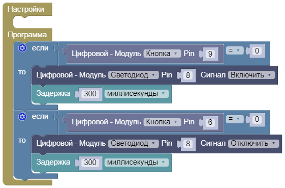 Открыть пример: Online ArduBlock
