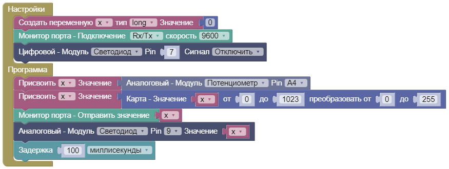 Конструктор знаток - Диммер лампочки - Arduino