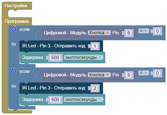 IR Led Pin 3. При клике на кнопку отправляем число.
