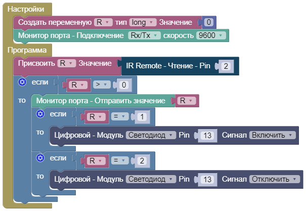 IR Remote Pin 2. Принимаем значение и включаем светодиод.