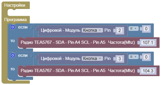 При клике на кнопку - отправим частоту на FM Радио TEA5767
