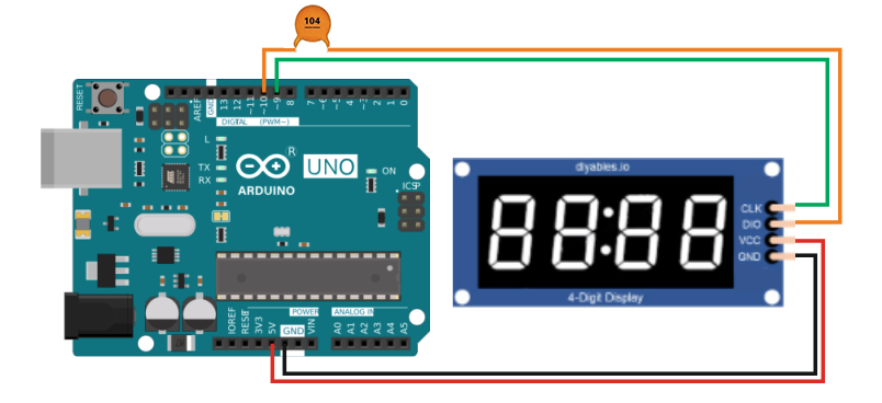 Отобразим счётчик с мигающим двоеточием на цифровом индикаторе TM1637 x4.