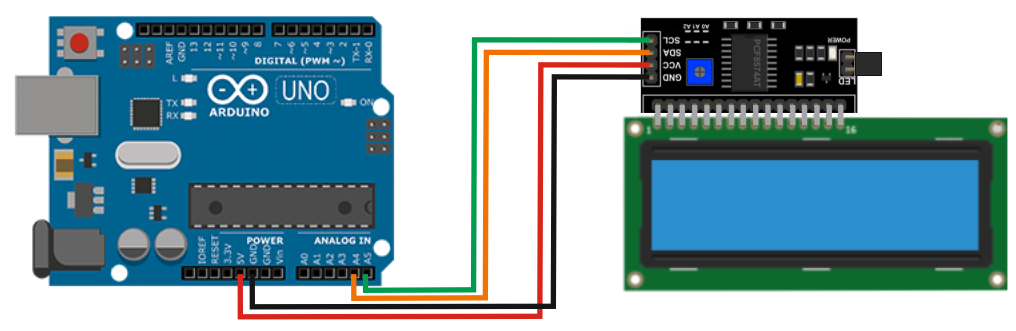 Отображение информации на дисплее LCD 1602 2004 I2C