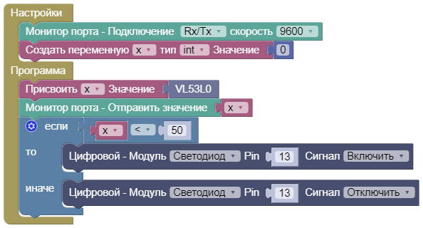 Получим данные с лазерного дальномера VL53L0 и отправим их в монитор порта.