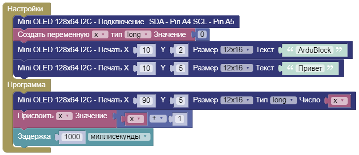 Отображение текста и значения переменной на дисплее MINI OLED I2C