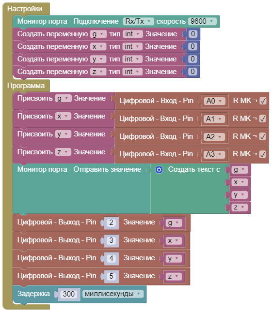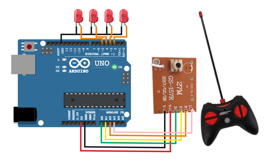 Получаем данные с кнопок пульта и включаем светодиоды.
