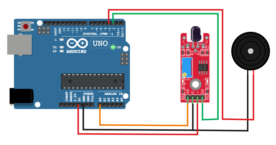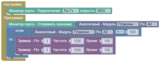 Получаем данные с датчика пламени и включаем зуммер.