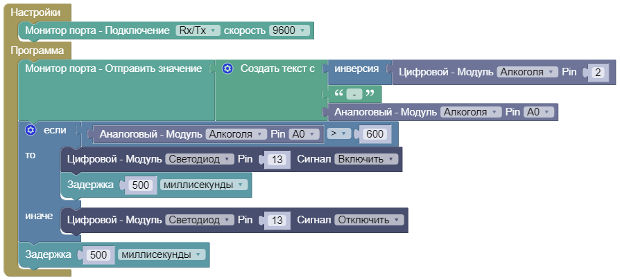 Открыть пример: Online ArduBlock