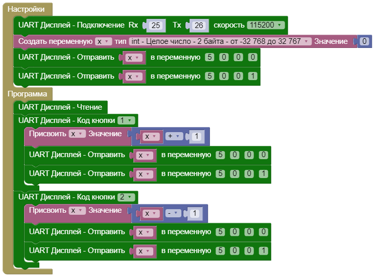 При клике на кнопки - меняем значение переменной на дисплее DWIN.